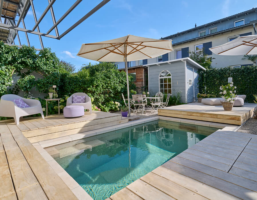 Mit einem Bio Minipool erzielen Sie Pool-Optik und -Komfort, jedoch mit einer natürlichen, biologischen Aufbereitung.
